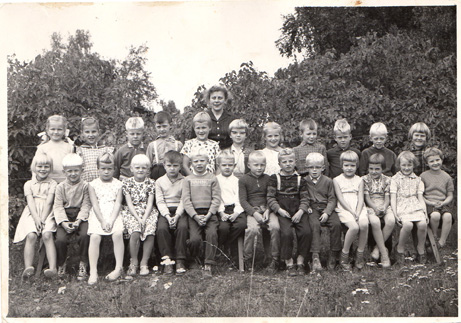 | Ensimmäinen ja osa toista luokkaa 1959 Sivuston tekijä Seppo Pirhonen edessä vasemmalla ensimmäisessä rivissä Saarisen Ritvan vieressä. |